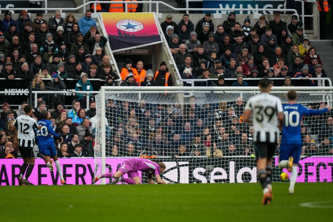 Joao Pedro of Chelsea scores to make it 2-2 during the Premier League match Newcastle United vs Chelsea at St. James's Park, Newcastle, United Kingdom, 20th December 2025, Credit:Maynard Manyowa/News Images / Avalon