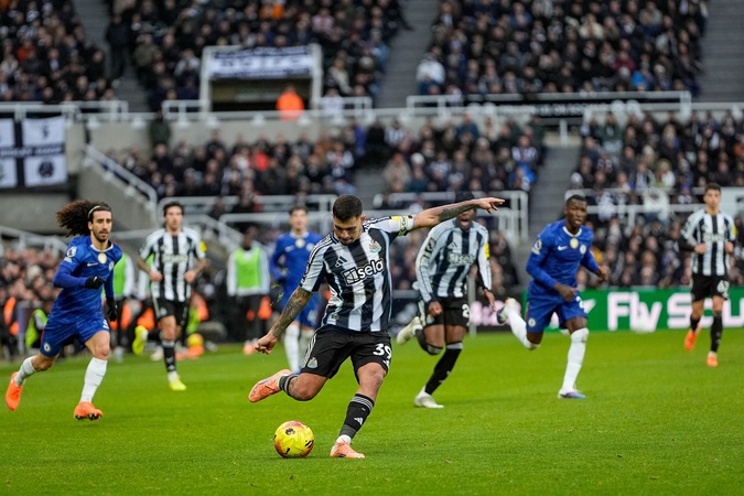 Bruno Guimaraes of Newcastle United crosses the ball during the Premier League match Newcastle United vs Chelsea at St. James's Park, Newcastle, United Kingdom, 20th December 2025, Credit:Maynard Manyowa/News Images / Avalon