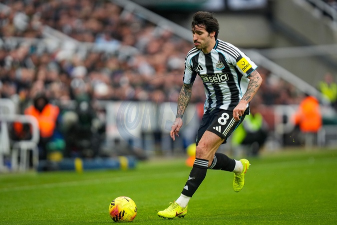 Sandro Tonali of Newcastle United runs with he ball during the Premier League match Newcastle United vs Chelsea at St. James's Park, Newcastle, United Kingdom, 20th December 2025, Credit:Maynard Manyowa/News Images / Avalon