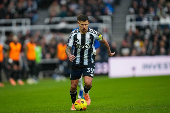 Bruno Guimaraes of Newcastle United runs with the ball during the Premier League match Newcastle United vs Chelsea at St. James's Park, Newcastle, United Kingdom, 20th December 2025, Credit:Maynard Manyowa/News Images / Avalon