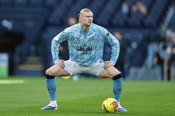 Erling Haaland of Manchester City in the pregame warmup session during the Premier League match Manchester City vs West Ham United at Etihad Stadium, Manchester, United Kingdom, 20th December 2025, Credit:Mark Cosgrove/News Images / Avalon
