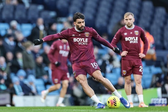 Lucas Paqueta of West Ham United in the pregame warmup session during the Premier League match Manchester City vs West Ham United at Etihad Stadium, Manchester, United Kingdom, 20th December 2025, Credit:Mark Cosgrove/News Images / Avalon