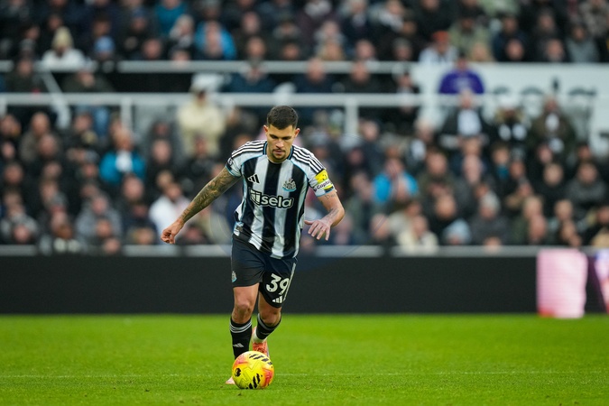 Bruno Guimaraes of Newcastle United takes a free kick during the Premier League match Newcastle United vs Chelsea at St. James's Park, Newcastle, United Kingdom, 20th December 2025, Credit:Maynard Manyowa/News Images / Avalon