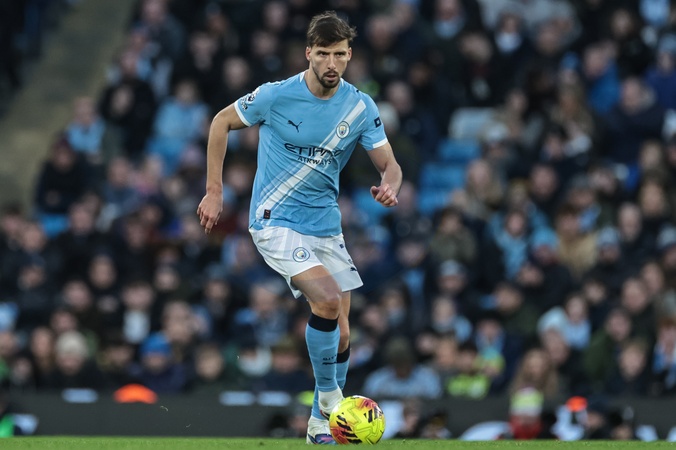 Ruben Dias of Manchester City breaks with the ball during the Premier League match Manchester City vs West Ham United at Etihad Stadium, Manchester, United Kingdom, 20th December 2025, Credit:Mark Cosgrove/News Images / Avalon