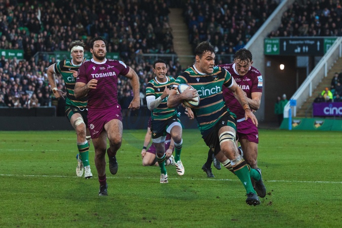 Josh Kemeny of Northampton Saints during the Gallagher Premiership match Northampton Saints vs Sale Sharks at Cinch Stadium at Franklin's Gardens, Northampton, United Kingdom, 20th December 2025, Credit:Craig Evans/News Images / Avalon