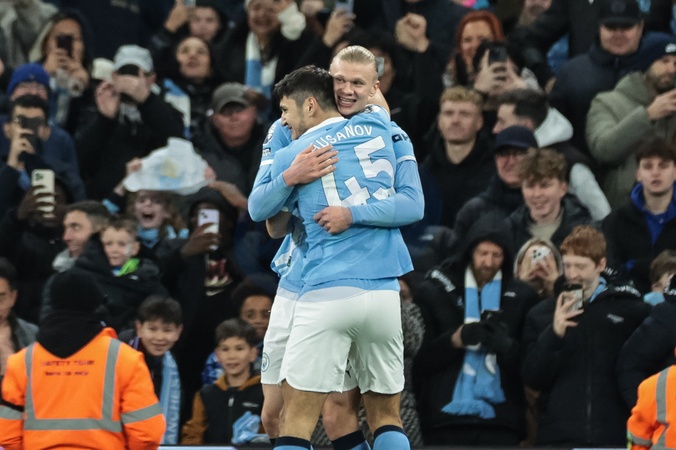 Erling Haaland of Manchester City celebrates his goal to make it 3-0 during the Premier League match Manchester City vs West Ham United at Etihad Stadium, Manchester, United Kingdom, 20th December 2025, Credit:Mark Cosgrove/News Images / Avalon