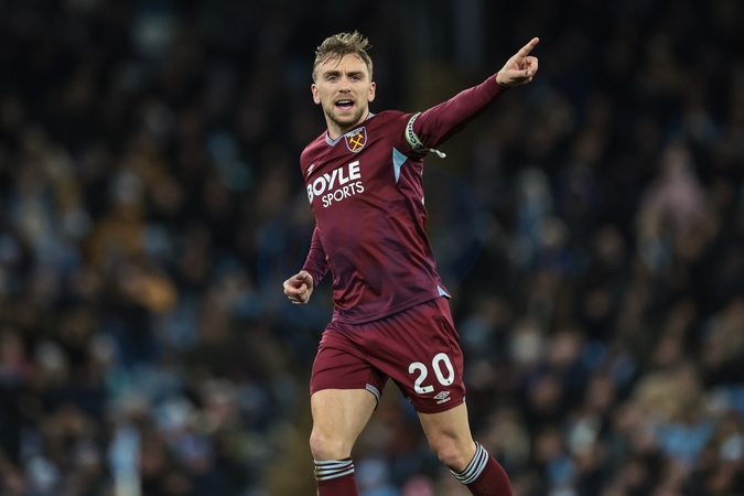 Jarrod Bowen of West Ham United gives his team instructions during the Premier League match Manchester City vs West Ham United at Etihad Stadium, Manchester, United Kingdom, 20th December 2025, Credit:Mark Cosgrove/News Images / Avalon