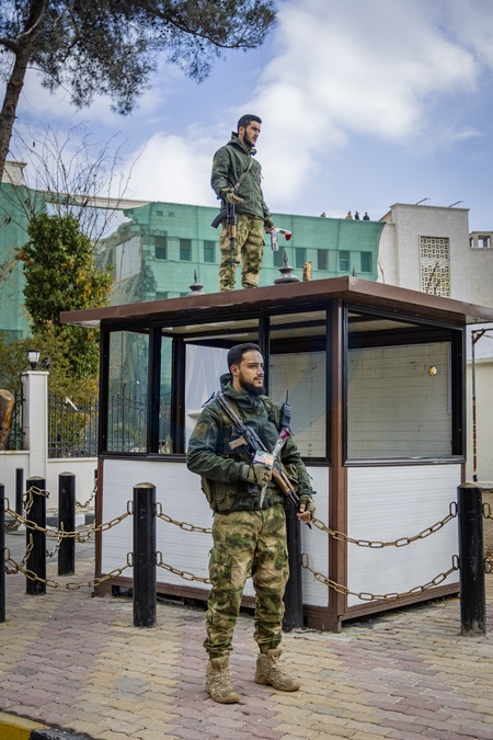 Syrians gathered in central Damascus on December 8, 2025, to take part in what was described as a "Liberation Celebration.” Large crowds waved Syrian flags, filled public squares, and chanted slogans marking the occasion. The celebrations continued throughout the day, with participants expressing national pride, unity, and hope during the commemorative events in the capital., Credit:Zak Irfan / Avalon