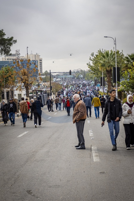 Syrians gathered in central Damascus on December 8, 2025, to take part in what was described as a "Liberation Celebration.” Large crowds waved Syrian flags, filled public squares, and chanted slogans marking the occasion. The celebrations continued throughout the day, with participants expressing national pride, unity, and hope during the commemorative events in the capital., Credit:Zak Irfan / Avalon