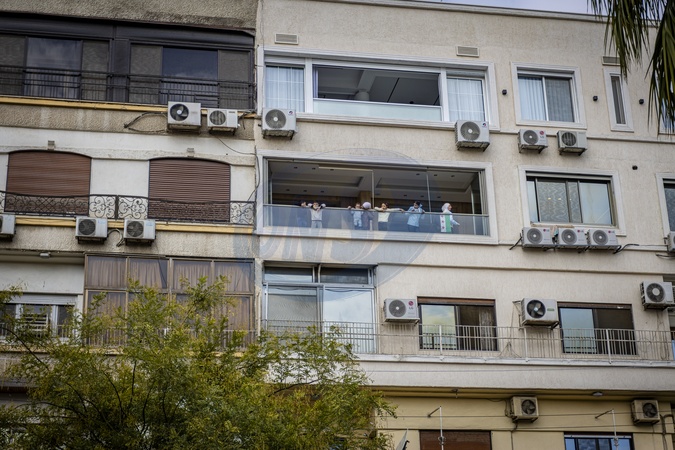 Syrians gathered in central Damascus on December 8, 2025, to take part in what was described as a "Liberation Celebration.” Large crowds waved Syrian flags, filled public squares, and chanted slogans marking the occasion. The celebrations continued throughout the day, with participants expressing national pride, unity, and hope during the commemorative events in the capital., Credit:Zak Irfan / Avalon