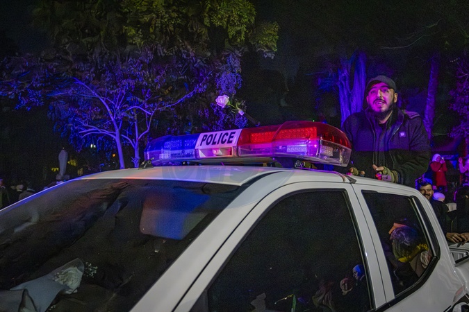 Syrians gathered in central Damascus on December 8, 2025, to take part in what was described as a "Liberation Celebration.” Large crowds waved Syrian flags, filled public squares, and chanted slogans marking the occasion. The celebrations continued throughout the day, with participants expressing national pride, unity, and hope during the commemorative events in the capital., Credit:Zak Irfan / Avalon
