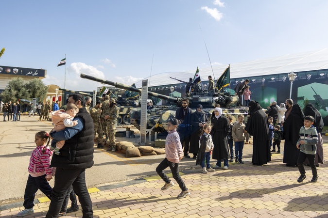 A military exhibition was held in Damascus showcasing equipment, vehicles, and technology used by the Syrian armed forces. The event was attended by military officials, invited guests, and members of the public, with displays highlighting Syria's defence capabilities and developments. The expo formed part of broader state-organised events taking place in the capital during 2025., Credit:Zak Irfan / Avalon
