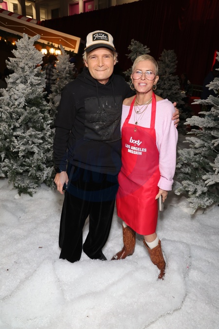 Corey Feldman and Nicole Eggert take part in the Los Angeles Mission's Annual Thanksgiving Outreach on Skid Row, Los Angeles, USA, 19 December 2025., Credit:Faye Sadou / Avalon
