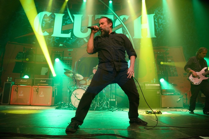 Lead singer Neil Fallon and bassist Dan Maines of American rock band Clutch performs at The Roundhouse, London, England, UK on Saturday 20 December 2025 as they celebrate the release of their 1995 self titled album on 180 gram vinyl for its 30th Anniversary., Credit:Justin Ng / Avalon