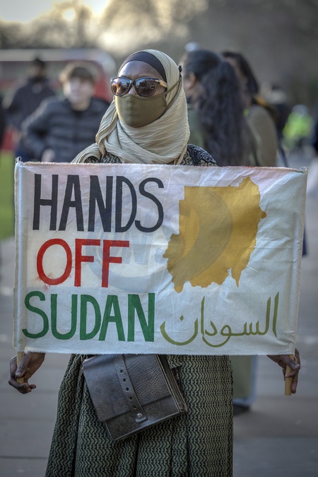 London, UK – On Saturday 20 December 2025, Sudanese communities gathered and marched from Church Street, W2 1EB to Marble Arch to commemorate the 2018 December Revolution. The demonstration honoured the martyrs of the revolution and drew attention to ongoing atrocities, displacement, starvation and alleged war crimes affecting people in Sudan. Protesters reaffirmed their commitment to a Sudan rooted in freedom, peace, justice and civilian rule, declaring that the spirit of the revolution remains alive through collective action and solidarity., Credit:Abdullah Bailey / Avalon