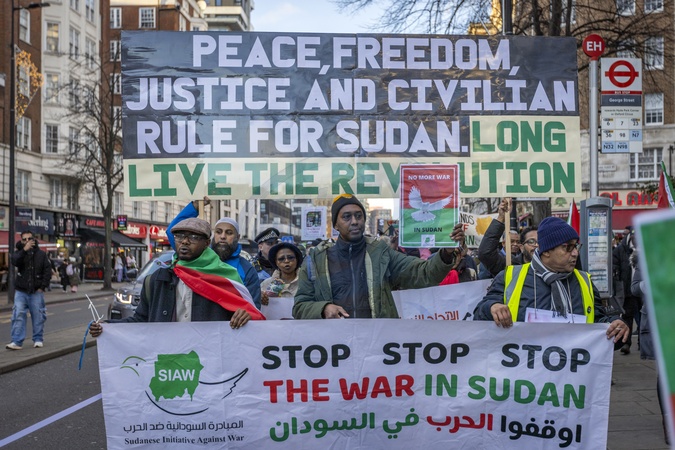 London, UK – On Saturday 20 December 2025, Sudanese communities gathered and marched from Church Street, W2 1EB to Marble Arch to commemorate the 2018 December Revolution. The demonstration honoured the martyrs of the revolution and drew attention to ongoing atrocities, displacement, starvation and alleged war crimes affecting people in Sudan. Protesters reaffirmed their commitment to a Sudan rooted in freedom, peace, justice and civilian rule, declaring that the spirit of the revolution remains alive through collective action and solidarity., Credit:Abdullah Bailey / Avalon