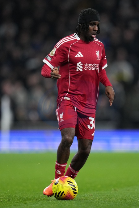 Jeremie Frimpong of Liverpool on the ball during the Premier League match Tottenham Hotspur vs Liverpool at Tottenham Hotspur Stadium, London, United Kingdom, 20th December 2025, Credit:Harvey Murphy/News Images / Avalon