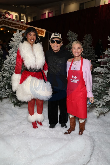 Raven Tracy, Corey Feldman and Nicole Eggert take part in the Los Angeles Mission's Annual Thanksgiving Outreach on Skid Row, Los Angeles, USA, 19 December 2025., Credit:Faye Sadou / Avalon
