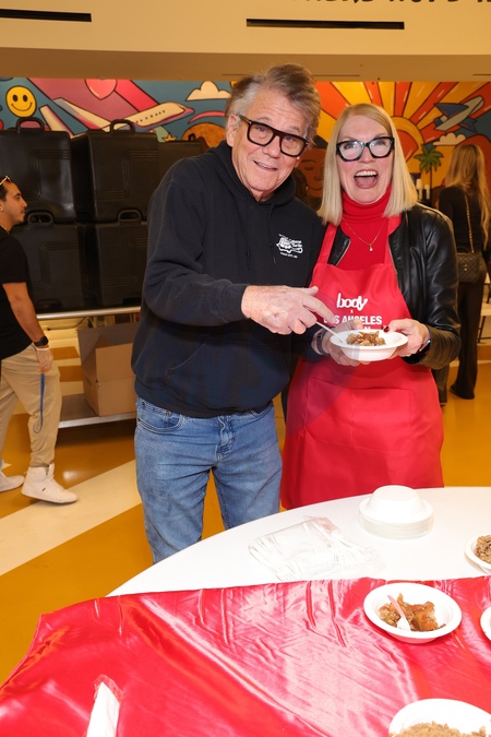 Anson Williams and Jackie Gerken take part in the Los Angeles Mission's Annual Thanksgiving Outreach on Skid Row, Los Angeles, USA, 19 December 2025., Credit:Faye Sadou / Avalon