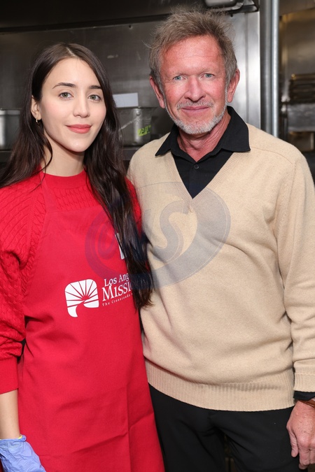 Caylee Cowan and Gregory Mielcarz take part in the Los Angeles Mission's Annual Thanksgiving Outreach on Skid Row, Los Angeles, USA, 19 December 2025., Credit:Faye Sadou / Avalon