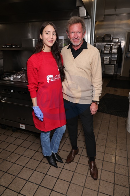 Caylee Cowan and Gregory Mielcarz take part in the Los Angeles Mission's Annual Thanksgiving Outreach on Skid Row, Los Angeles, USA, 19 December 2025., Credit:Faye Sadou / Avalon