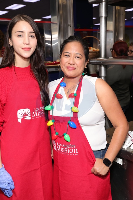 Caylee Cowan and Ysabel Jurado take part in the Los Angeles Mission's Annual Thanksgiving Outreach on Skid Row, Los Angeles, USA, 19 December 2025., Credit:Faye Sadou / Avalon