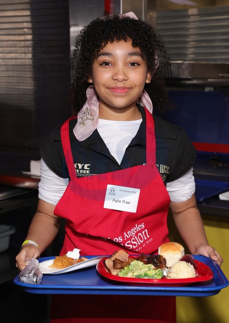 Ayla Rae Neal takes part in the Los Angeles Mission's Annual Thanksgiving Outreach on Skid Row, Los Angeles, USA, 19 December 2025., Credit:Faye Sadou / Avalon