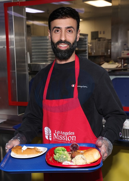 Amir Boroumand takes part in the Los Angeles Mission's Annual Thanksgiving Outreach on Skid Row, Los Angeles, USA, 19 December 2025., Credit:Faye Sadou / Avalon