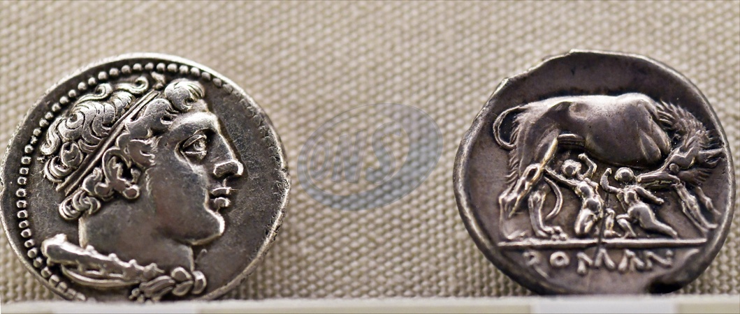 December 22, 2025, Rome. The National Roman Museum's Coin Cabinet reopens after a six-year closure, featuring the numismatic collection of Victor Emmanuel III and other important exhibits. Roman coin, Hercules/She-wolf suckling the twins., Credit:Mimmo Frassineti / Avalon
