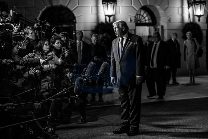 President Donald Trump speaks to members of the media before boarding Marine One on the South Lawn of the White House en route Joint Base Andrews, Maryland on Friday, December 19, 2025, for a trip to Rocky Mount, North Carolina., Credit:Joyce N. Boghosian / Avalon