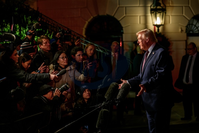 President Donald Trump speaks to members of the media before boarding Marine One on the South Lawn of the White House en route Joint Base Andrews, Maryland on Friday, December 19, 2025, for a trip to Rocky Mount, North Carolina., Credit:Joyce N. Boghosian / Avalon