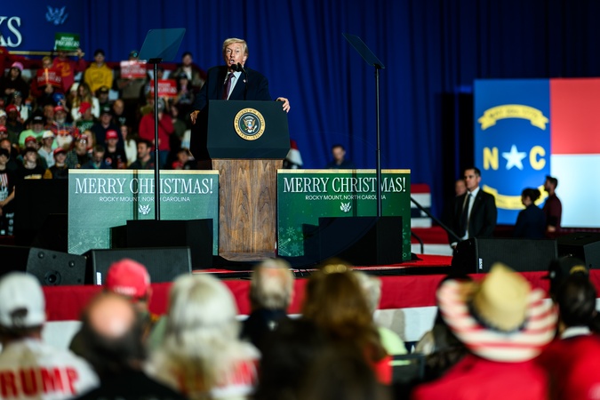 President Donald Trump delivers remarks on the economy at the Rocky Mount Event Center in Rocky Mount, North Carolina on Friday, December 19, 2025., Credit:Daniel Torok / Avalon