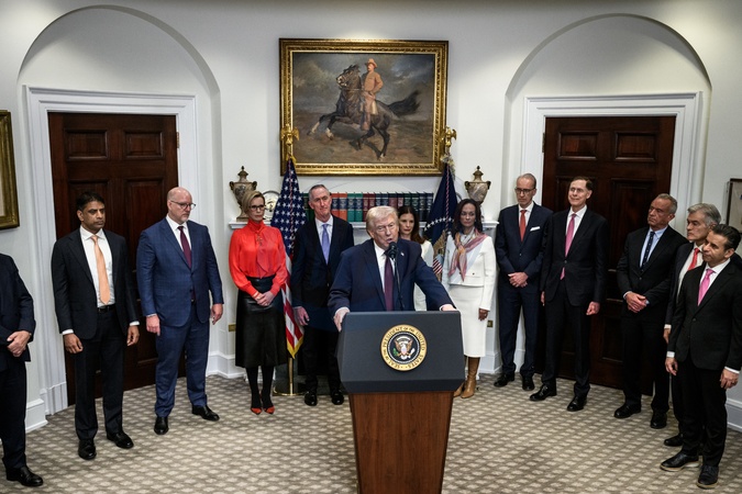 President Donald Trump makes an announcement on prescription drug prices in the Roosevelt Room, Friday, December 19, 2025., Credit:Joyce N. Boghosian / Avalon
