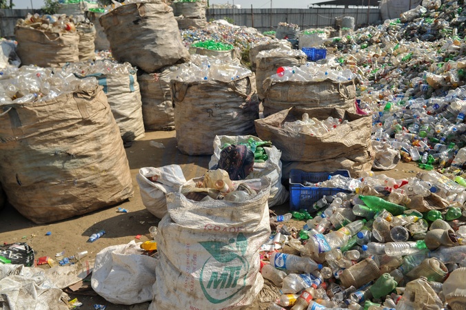 Chattogram, Bangladesh — Workers prepare discarded plastic bottles for recycling at a recycling facility in Chattogram, a coastal city in southeastern Bangladesh that frequently faces the impacts of climate change, including flooding. For more than a decade, plastic waste collected from across the city has been processed here, playing a vital role in environmental protection. The recycled raw plastic materials are exported to countries including Turkey, Dubai, and the United States, highlighting both the severe global burden of plastic pollution and the importance of recycling within the circular economy., Credit:Md Rafayat Haque Khan / Avalon