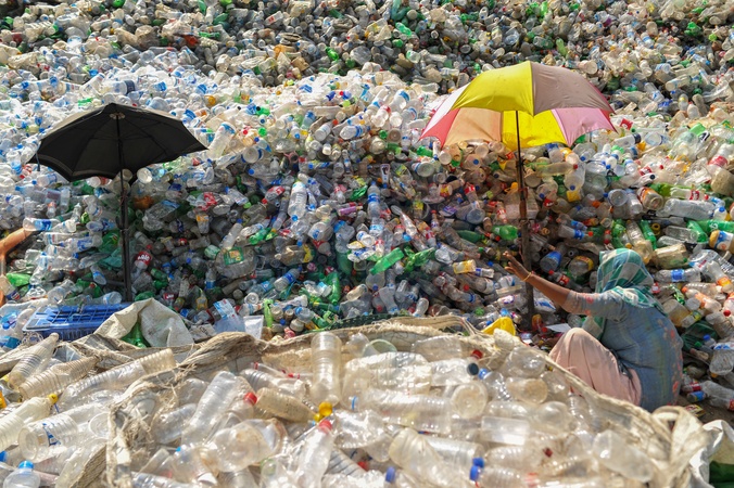 Chattogram, Bangladesh — Workers prepare discarded plastic bottles for recycling at a recycling facility in Chattogram, a coastal city in southeastern Bangladesh that frequently faces the impacts of climate change, including flooding. For more than a decade, plastic waste collected from across the city has been processed here, playing a vital role in environmental protection. The recycled raw plastic materials are exported to countries including Turkey, Dubai, and the United States, highlighting both the severe global burden of plastic pollution and the importance of recycling within the circular economy., Credit:Md Rafayat Haque Khan / Avalon