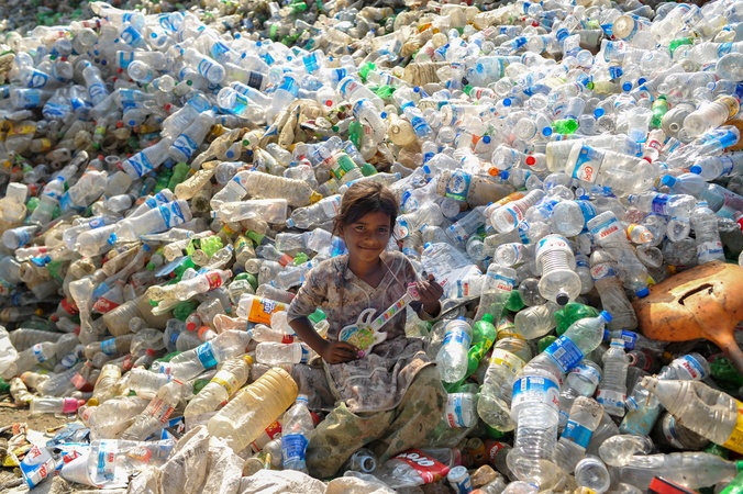 Chattogram, Bangladesh — A little girls poses with a plastic toy at a plastic bottle recycling facility in Chattogram, a coastal city in southeastern Bangladesh that frequently faces the impacts of climate change, including flooding. For more than a decade, plastic waste collected from across the city has been processed here, playing a vital role in environmental protection. The recycled raw plastic materials are exported to countries including Turkey, Dubai, and the United States, highlighting both the severe global burden of plastic pollution and the importance of recycling within the circular economy., Credit:Md Rafayat Haque Khan / Avalon