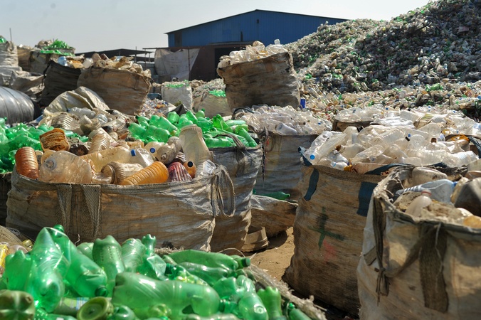 Chattogram, Bangladesh — Workers prepare discarded plastic bottles for recycling at a recycling facility in Chattogram, a coastal city in southeastern Bangladesh that frequently faces the impacts of climate change, including flooding. For more than a decade, plastic waste collected from across the city has been processed here, playing a vital role in environmental protection. The recycled raw plastic materials are exported to countries including Turkey, Dubai, and the United States, highlighting both the severe global burden of plastic pollution and the importance of recycling within the circular economy., Credit:Md Rafayat Haque Khan / Avalon