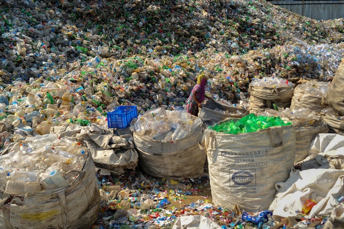 Chattogram, Bangladesh — Workers prepare discarded plastic bottles for recycling at a recycling facility in Chattogram, a coastal city in southeastern Bangladesh that frequently faces the impacts of climate change, including flooding. For more than a decade, plastic waste collected from across the city has been processed here, playing a vital role in environmental protection. The recycled raw plastic materials are exported to countries including Turkey, Dubai, and the United States, highlighting both the severe global burden of plastic pollution and the importance of recycling within the circular economy., Credit:Md Rafayat Haque Khan / Avalon