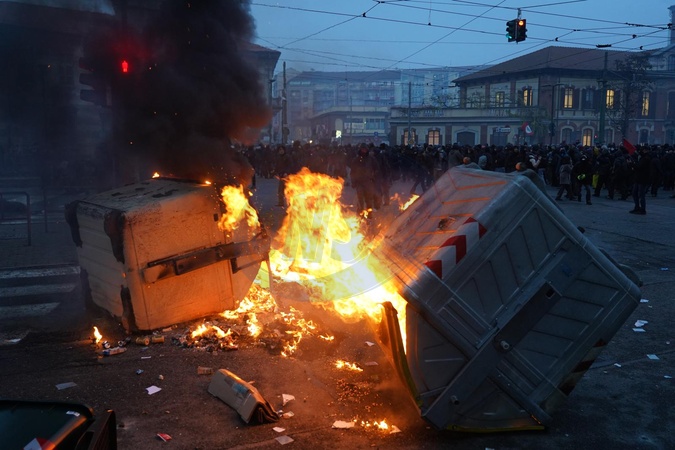 Demonstration following the eviction of the Askatasuna social center, a historic facility on Corso Regina 47. Clashes between protesters and police, with several garbage bins set on fire, are pictured. Turin, Italy 20 December 2025, Credit:Selene Daniele / Avalon