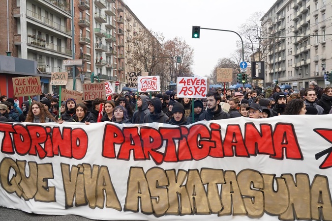 Citizens protest following the eviction of the Askatasuna social center