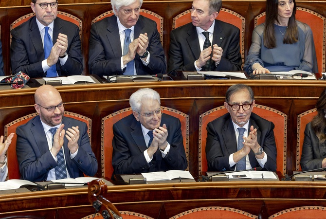 President Sergio Mattarella, Senate President Ignazio La Russa, and Chamber of Deputies President Lorenzo Fontana at the Christmas concert. Rome, Italy 21 December 2025, Credit:Paul Giandotti / Avalon