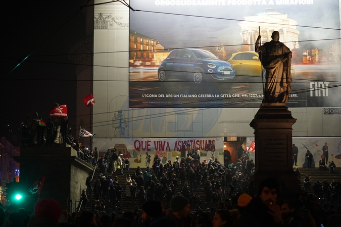 A demonstration took place in Turin following the eviction of the Askatasuna social center, a historic community center located on Corso Regina 47. Pictured is the procession's conclusion at Turin's Gran Madre church. Turin, Italy 20 December 2025, Credit:Selene Daniele / Avalon