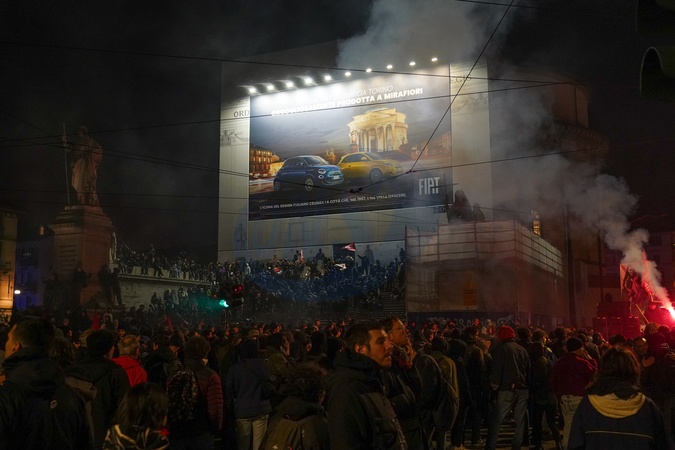 A demonstration took place in Turin following the eviction of the Askatasuna social center, a historic community center located on Corso Regina 47. Pictured is the procession's conclusion at Turin's Gran Madre church. Turin, Italy 20 December 2025, Credit:Selene Daniele / Avalon