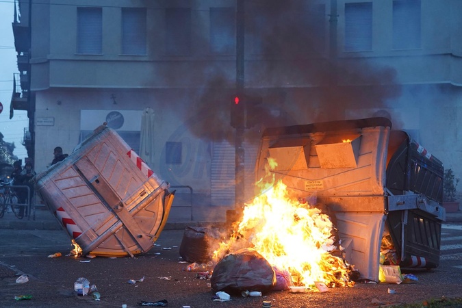 Demonstration following the eviction of the Askatasuna social center, a historic facility on Corso Regina 47. Clashes between protesters and police are pictured. Several garbage bins are set on fire. Turin, Italy 20 December 2025, Credit:Selene Daniele / Avalon
