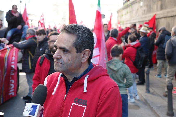 Protesters march through the city center during the national general strike called by the CGIL against the budget law. Pictured is CGIL Sicily General Secretary Alfio Mannino. Palermo, Italy 12 December 2025, Credit:Christian Bonaviri / Avalon