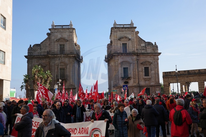 Protesters march through the city center during the national general strike called by the CGIL against the budget law. Palermo, Italy 12 December 2025, Credit:Christian Bonaviri / Avalon