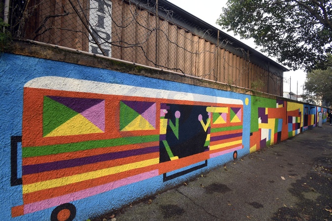 The new mural by Geometric Bang (Mattia Botta) on Via del Porto Fluviale in Ostiense. Rome, Italy 22 December 2025, Credit:Mimmo Frassineti / Avalon