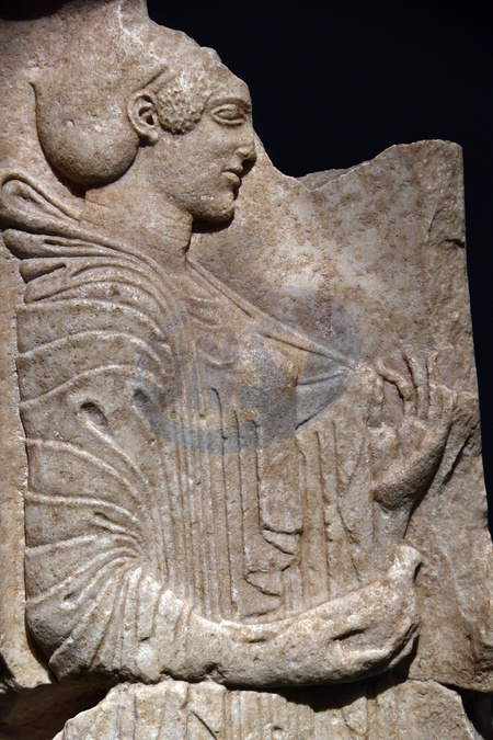 The exhibition "Greece in Rome," curated by Eugenio La Rocca and Claudio Parisi Presicce, at the Capitoline Museums until April 12, 2026. Funerary stele depicting a woman with a dove, 475 BC. Rome, Dec 23rd 2025, Credit:Mimmo Frassineti / Avalon
