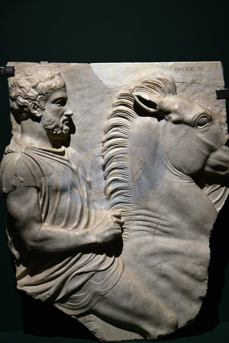 The exhibition "Greece in Rome," curated by Eugenio La Rocca and Claudio Parisi Presicce, is at the Capitoline Museums until April 12, 2026. Relief with horseman, 430 BC. Rome, Dec 23rd 2025, Credit:Mimmo Frassineti / Avalon