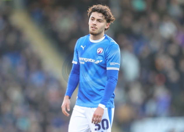 Devan Tanton of Chesterfield during the Sky Bet League 2 match Chesterfield vs Notts County at SMH Group Stadium, Chesterfield, United Kingdom, 26th December 2025, Credit:Richard Bierton/News Images / Avalon